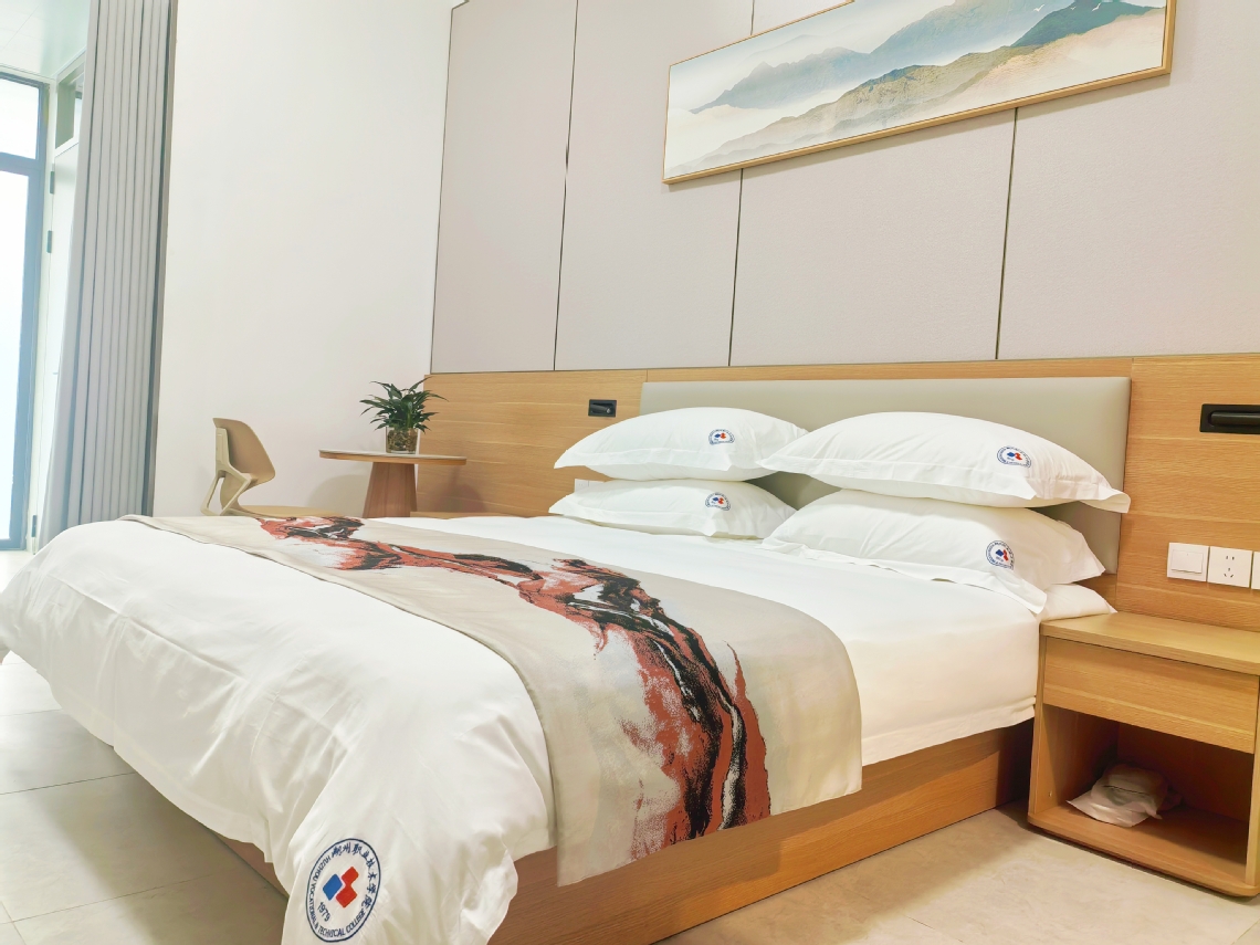 作为校园功能配套的重要延伸,栖贤楼坐落于校园西区核心区位,地理位置得天独厚,步行即可抵达餐厅、商贸服务区、图书馆及各类运动场馆,便捷衔接校园各类核心功能区,兼顾居住舒适度与出行便利性。楼内首批启用140间客房,涵盖102间舒适标准间与38间雅致大床房,房型布局合理、设施完备,可充分满足政校行企专题培训班学员、院校交流考察的学界同仁,以及国(境)内外求学深造的莘莘学子等多样化下榻需求。